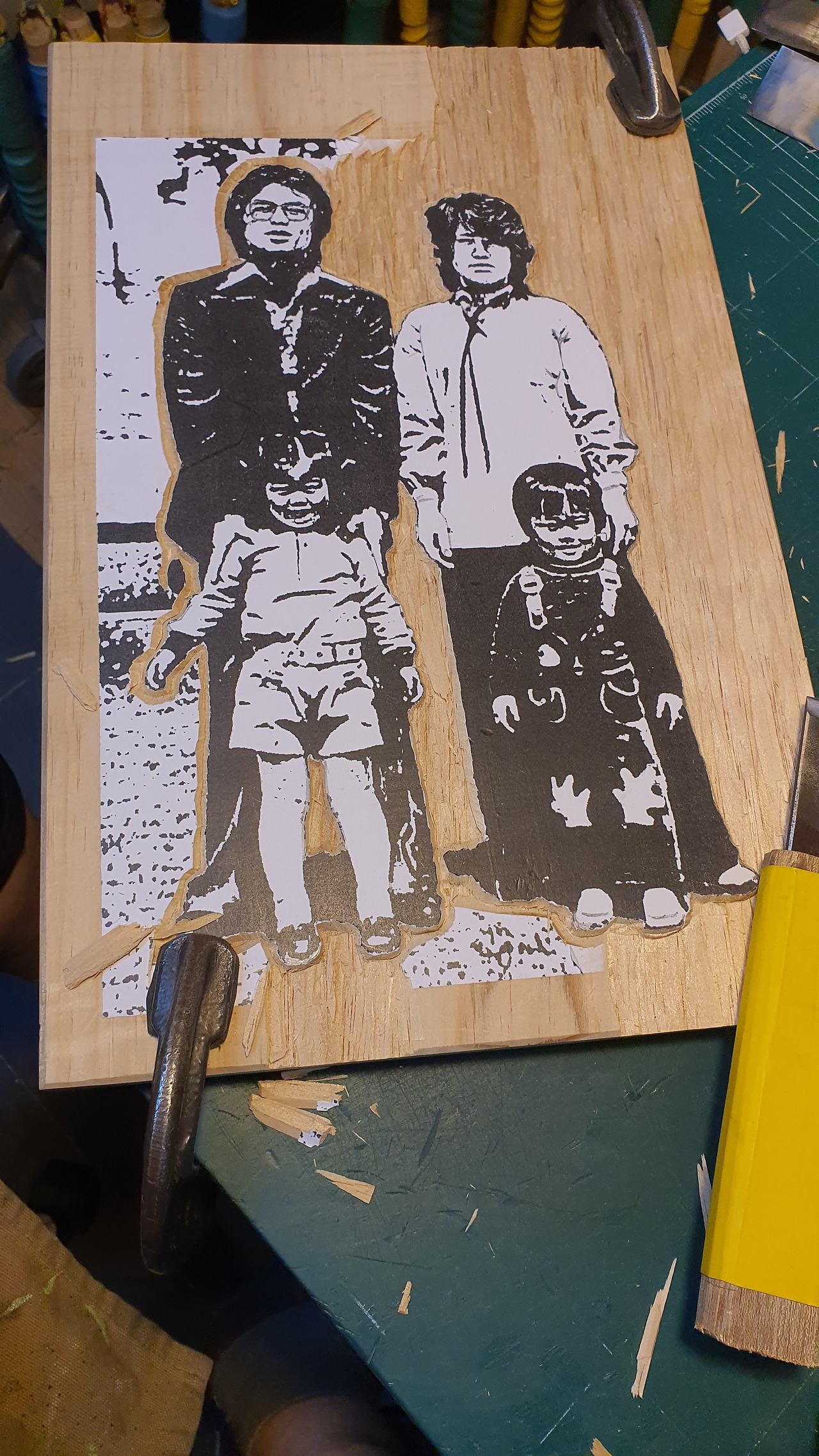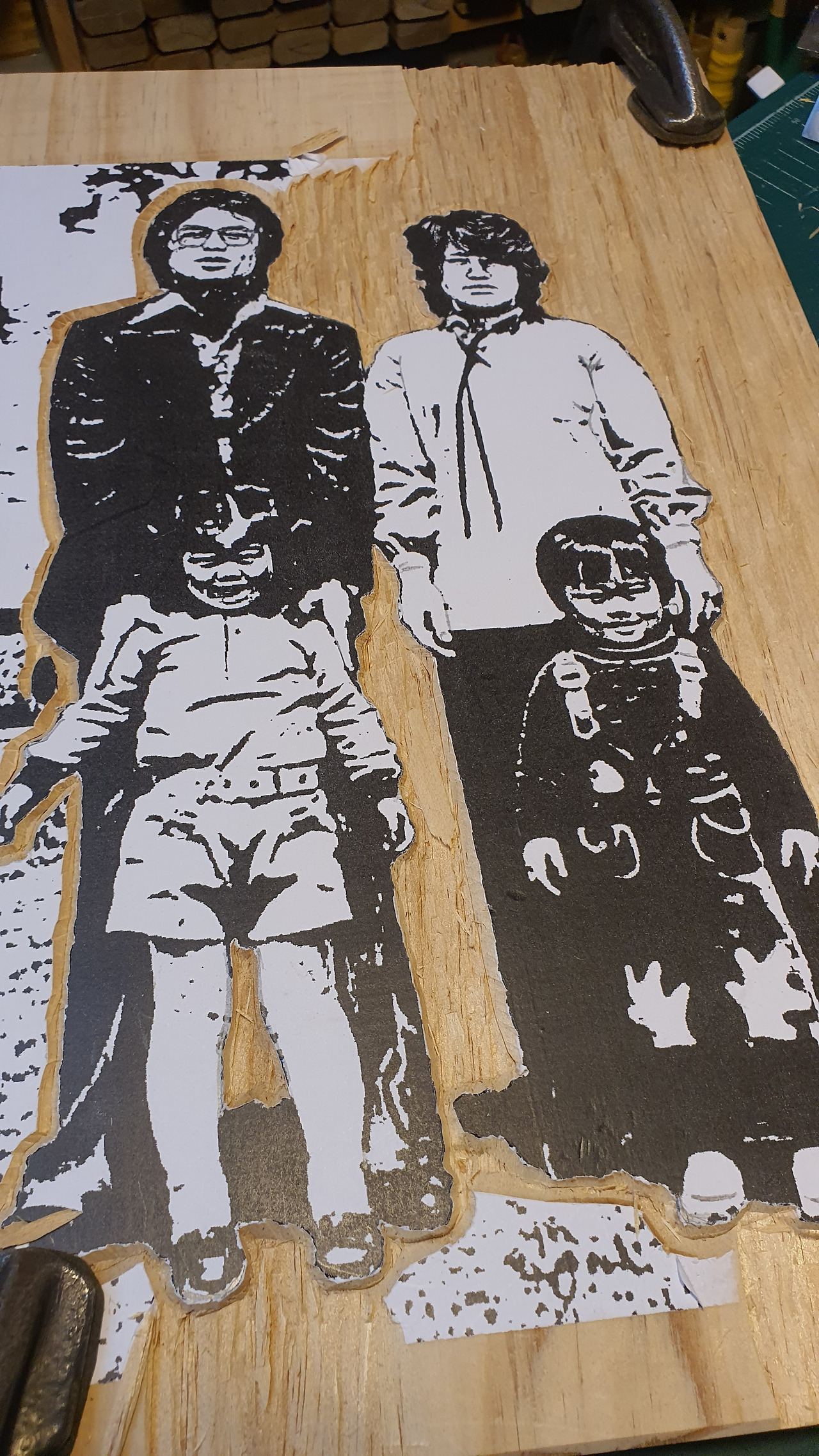 아빠가 우리 곁을 떠난 지 올해가 벌써 10년이 됐다. 어버이날 엄마한테 무슨 선물을 할까 고민을 하다가 어릴 적 가족사진 색이 자꾸 흐려지니까 판화로 남겨보면 어떨까 하는 생각이 들어 정찬민 작가님께 제작을 부탁드렸다. 사진만 봐도 판화로 제작하기엔 힘들 것 같아서 부탁드리기도 죄송하고 예술가에게 제작비를 물어보는 것조차 민망했다. 친정엄마께 어버이날 선물로 가족사진을 판화로 제작해서 선물해 드리고 싶다고 말씀드리고 혹시나 바쁘신데 폐를 끼치는 건 아닌가도 싶어서 힘들면 거절하셔도 된다고 말했다. 작가님께서는 뭐냐고 물으셨고 사진을 보냈는데 "옛 필름 사진이라 더 이상 좋게 나오지 않아요"라며 뽀샵 사진을 보내주셨다. 나는 "저는 그 상태도 좋은데 힘들면 다른 사진을 찾아볼게요."라고 했다. 작가님은 "원하시면 해드리죠"라고 허락하셨다. 국가무형문화재이신 분이 가족사진을 판화로 제작해 주신다니 너무나도 기뻤다.