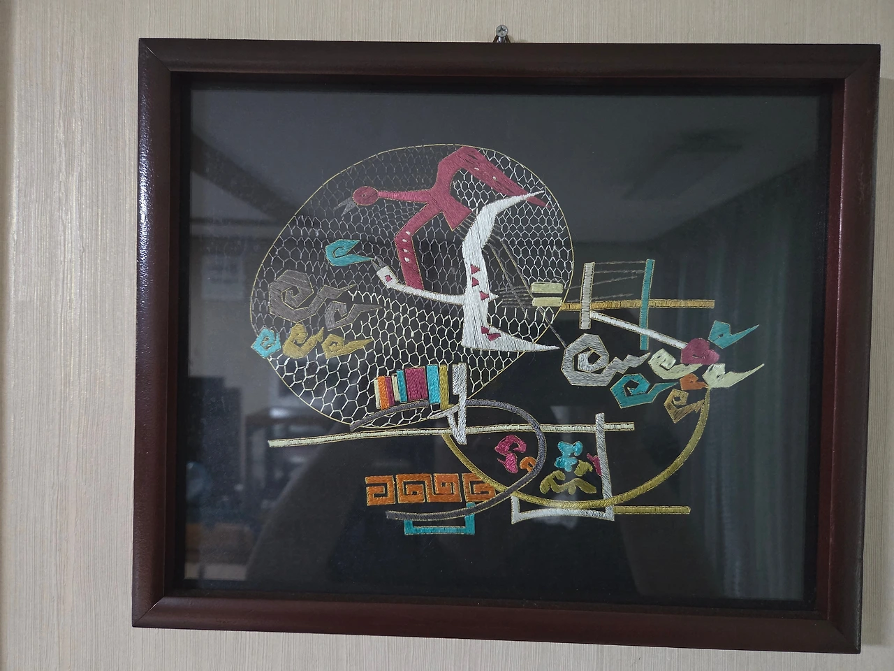 <34년간 친정 거실에 걸려 있던 고1때 만든 자수 액자. 지금은 우리집 벽에 걸어뒀다.>