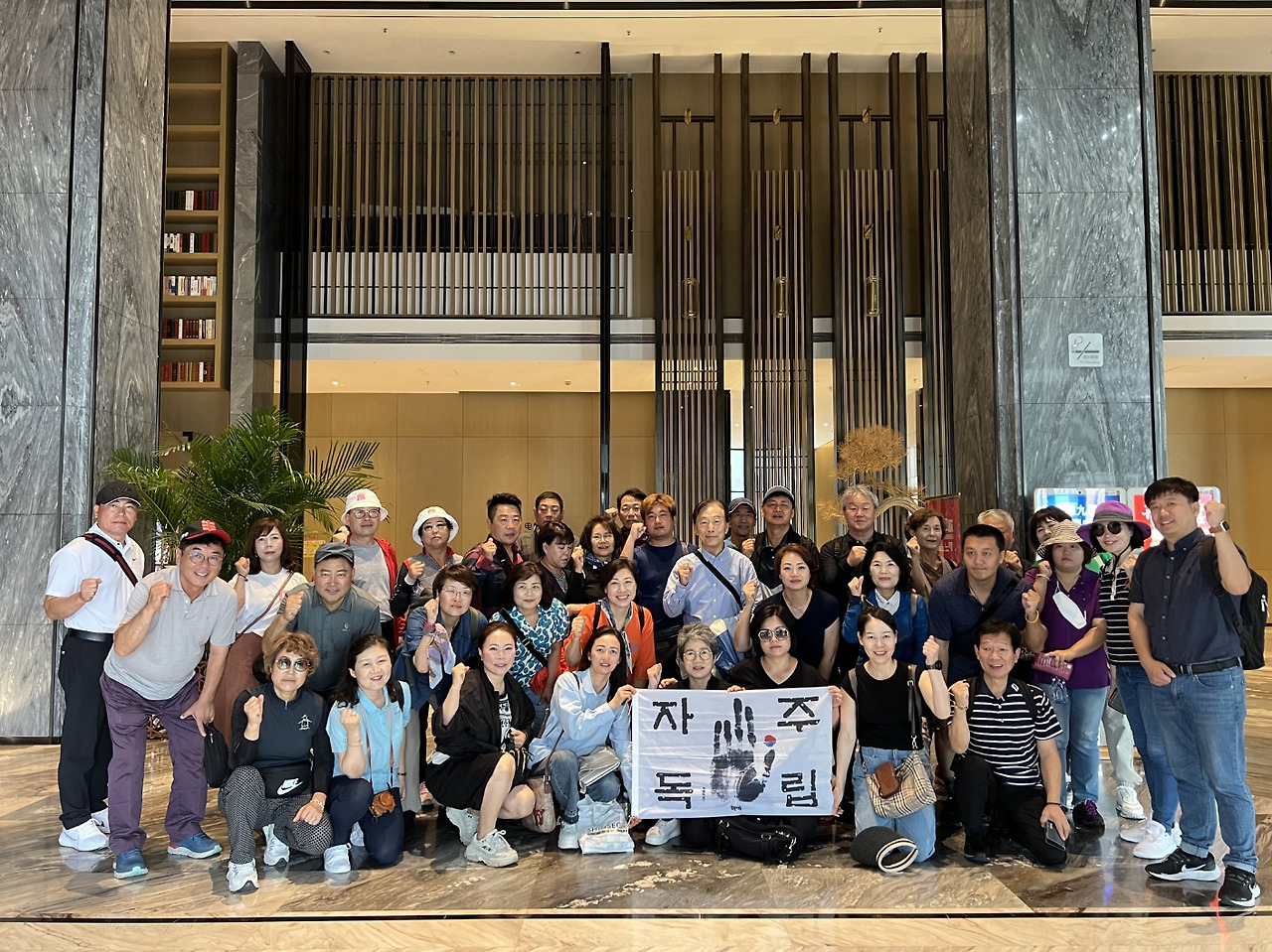 마지막 날 아침, 마침내 자주독립기를 들고 호텔에서 단체사진을 남겼다.