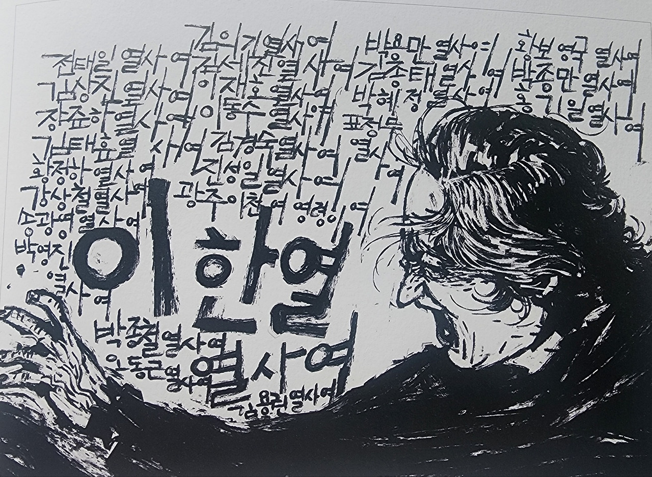 < 백영욱 작가 '열사여!' : 먹으로 그린 캘리그래피 , 1987년 7월 9일 '애국학생 고 이한열 열사 민주국민장 '조사, 문익환 목사님 서서 30주년, 선생의 처절한 절규를 소환하다. >
