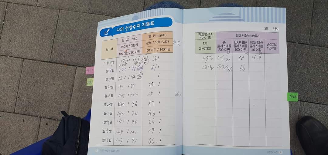 단식하던 중 보건소에서 나와 혈압과 혈당을 체크했다. 70 이하면 저혈당이고 쭉 저혈당이었다
