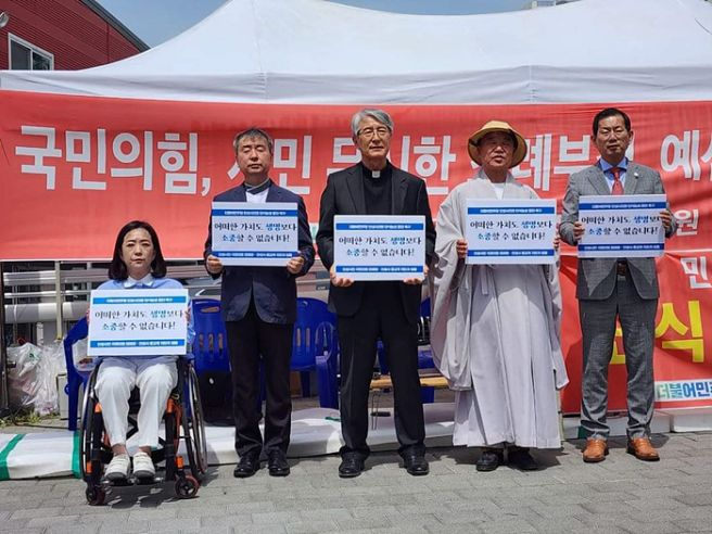 안성 종교계 대표자분들과 최혜영 국회의원이 함께 인도적 차원의 단식중단 촉구 성명을 발표했다