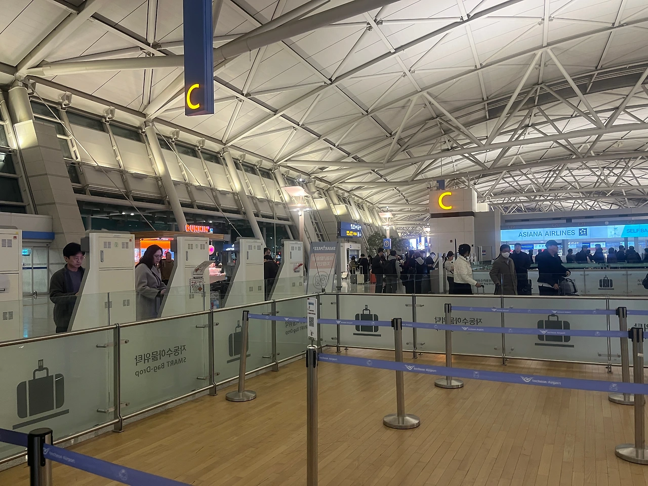 인천공항은 처음이다. 수하물을 붙이기 위해 셀프 백드롭 줄에 섰다. 그런데 줄에 서 있는 사람들 손에