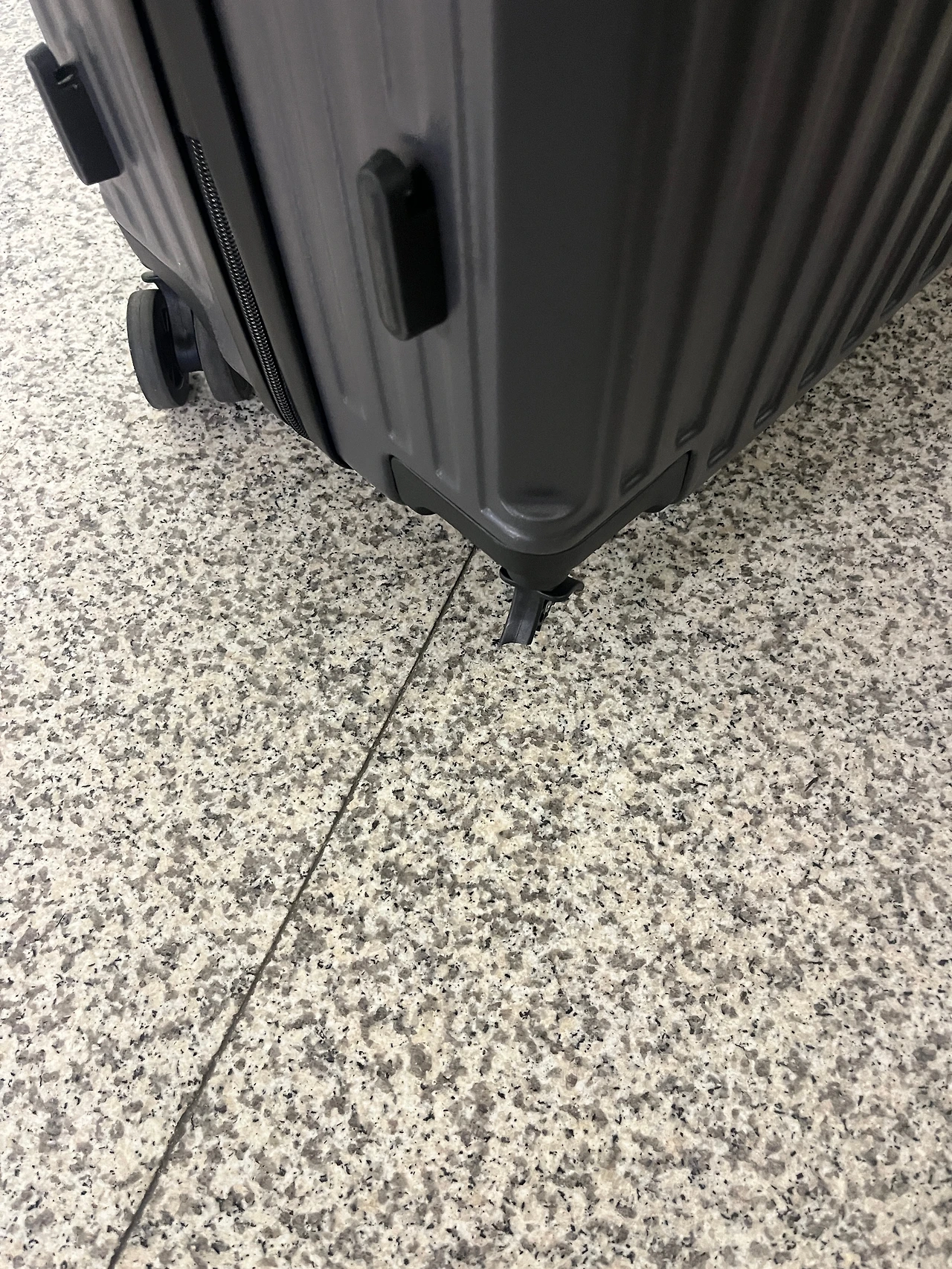 공항버스를 기다리며 줄을 서고 있었는데, 버스 줄 근처 바닥이 돌길이었다. 캐리어를 끌고 한 번 지나갔을 뿐인데, 덜컹 소리가 났다. 고개를 숙여 보니 바퀴 하나가 빠져 있었다. 그 캐리어는 쿠팡에서 산 중국산 캐리어였다. 컵홀더랑 휴대폰 충전기 같은 자잘한 기능들이 달려 있어서 샀는데, 이리 약할 줄 몰랐다. 쓴 지 하루 만에 부서졌다.