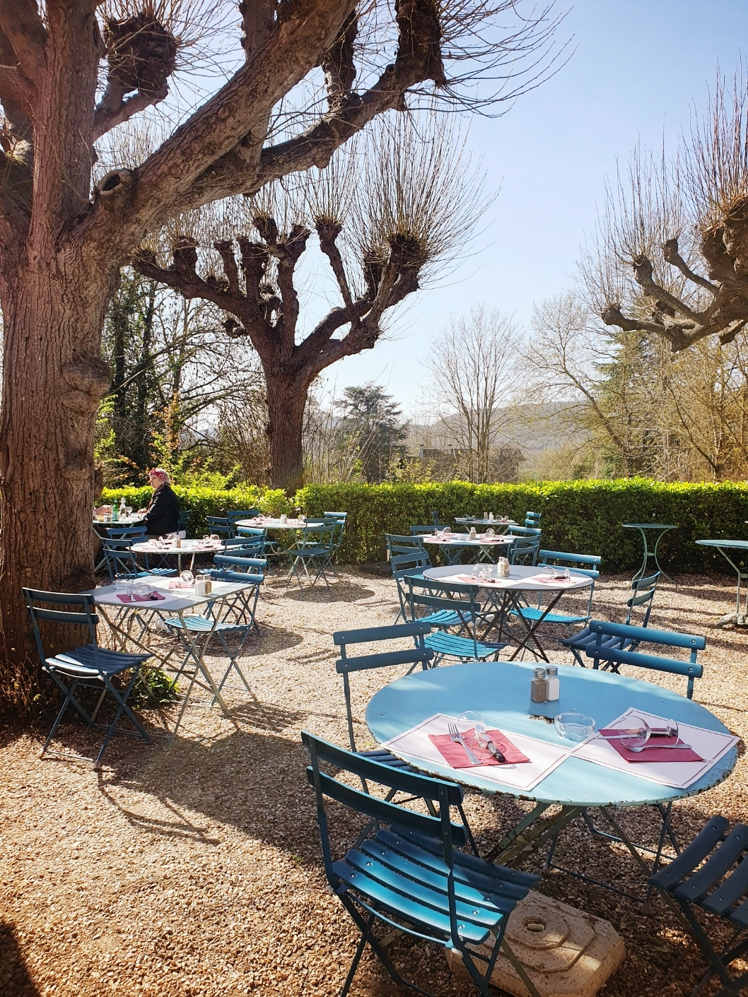 지베르니의 한 레스토랑에서 헐벗은 나무가 때 이른 봄인 것을 알려준다.