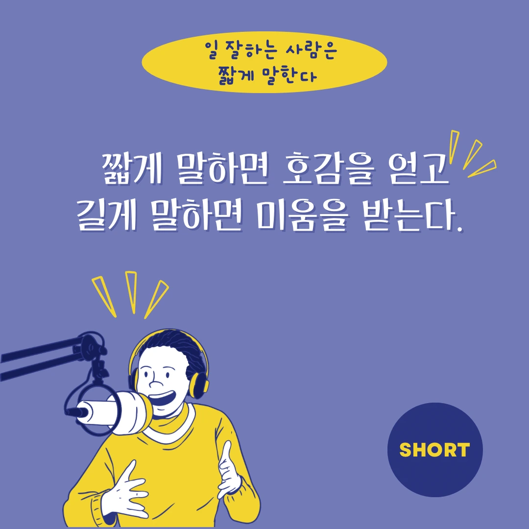 짧게 말하면 호감을 얻고 길게 말하면 미움을 산다는 말을 어디 가서 말할 일이 있을 때는 반드시 명심하고 또 명심하자.