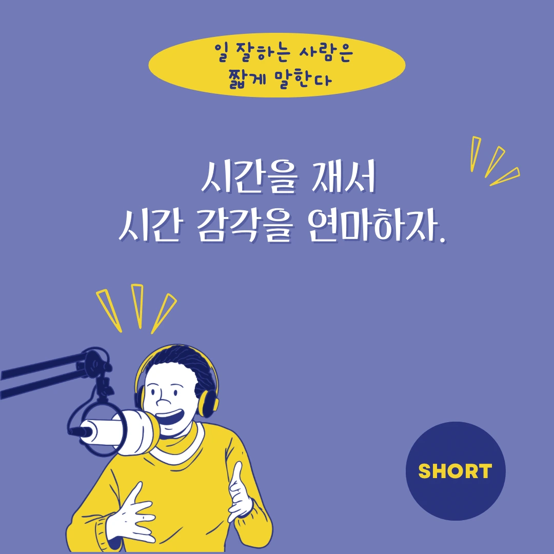 난 이것 또한 거꾸로 생각한 것이다. 먼저 1분을 타이머에 맞추는 줄 알았다. 작가님이 말씀하시는 방법대로 따라 해 봤더니 확실히 달랐다. 타이머에 1분을 맞춰놓고 시작을 하다 보면 그냥 1분에 멈춰버리니까 요약이 안된다. 하지만 말을 하면서 1분쯤 됐다고 생각되는 시점에서 멈추니까 미리 어느 정도 요약을 하게 된다.