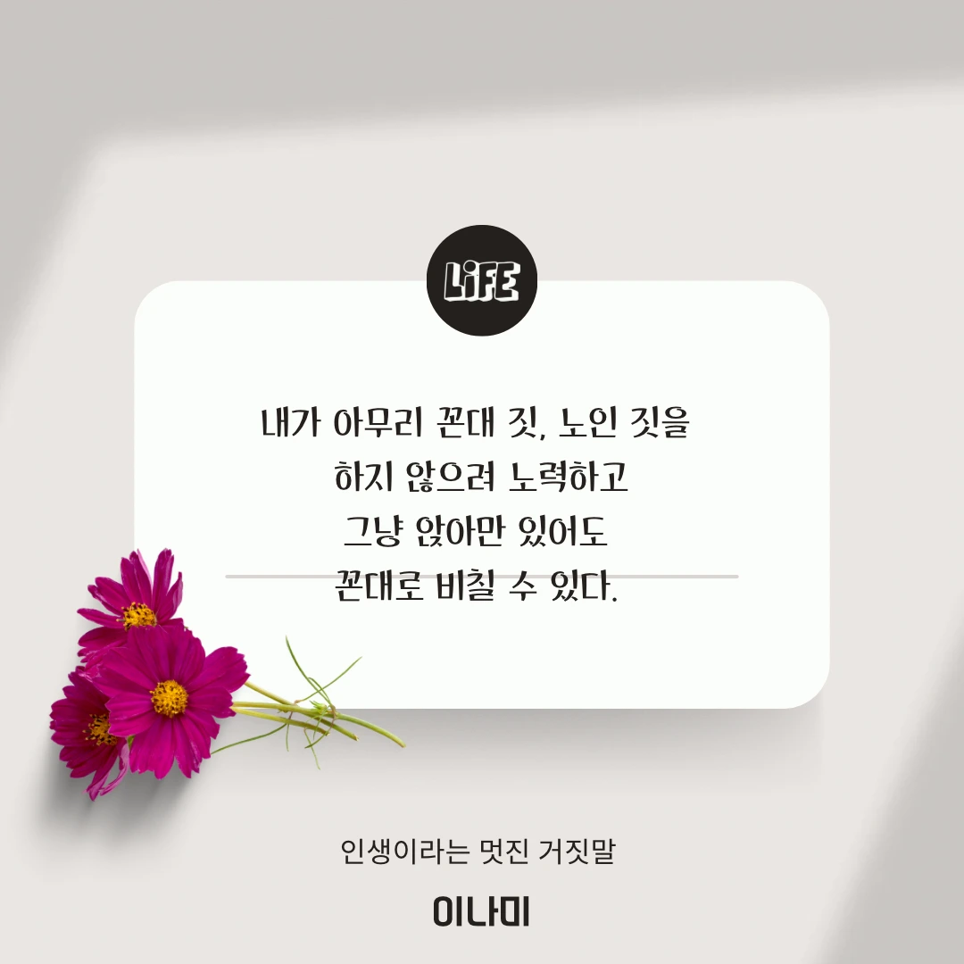 하지만 한 가지 확실한 것은 이 또한 지나갈 것이고, 시간이 해결해 줄 것이며, 인생이란 아무리 힘들고 고달프더라도 그냥 살아진다는 것이다.
