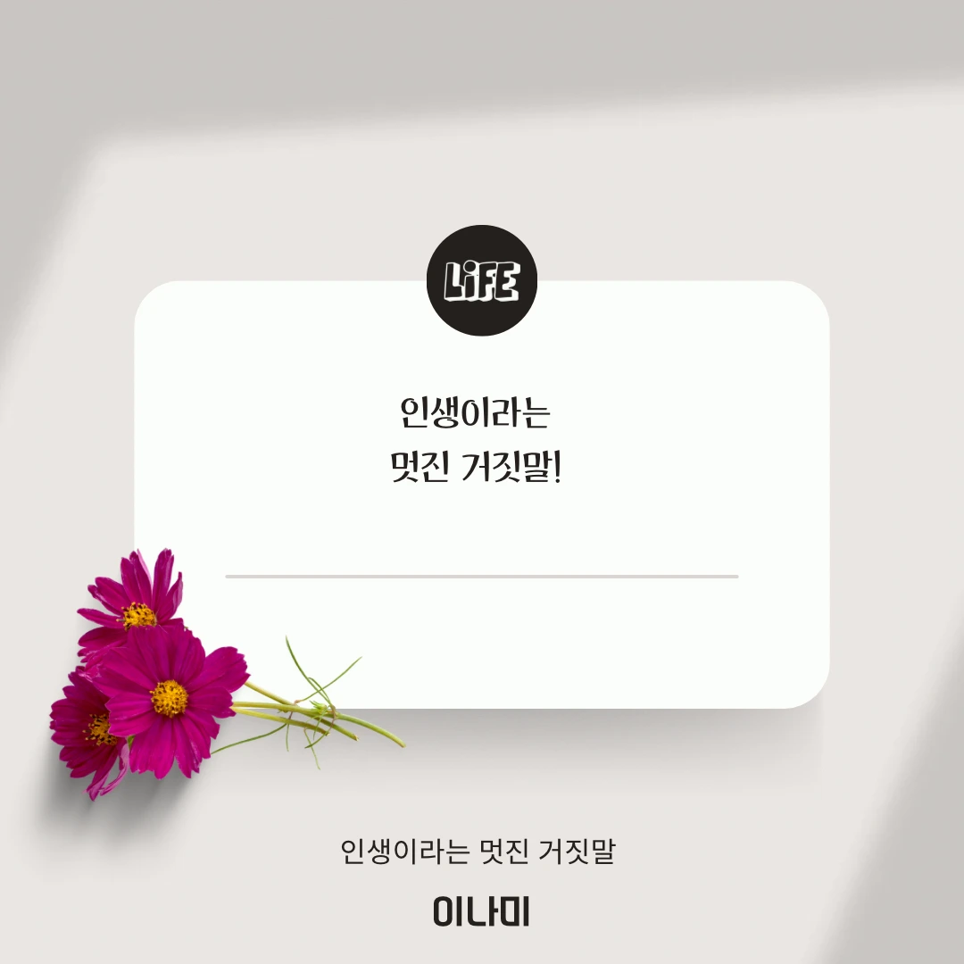 이나미 작가님은 정신건강의학과 의사이자 분석 심리연구가이시다. 《 인생이라는 멋진 거짓말 》이라는 책은 이나미 작가님이 황혼으로 접어든 자신과 주변의 사람들을 바라보면서 인생에 대한 소신을 담은 책이다.