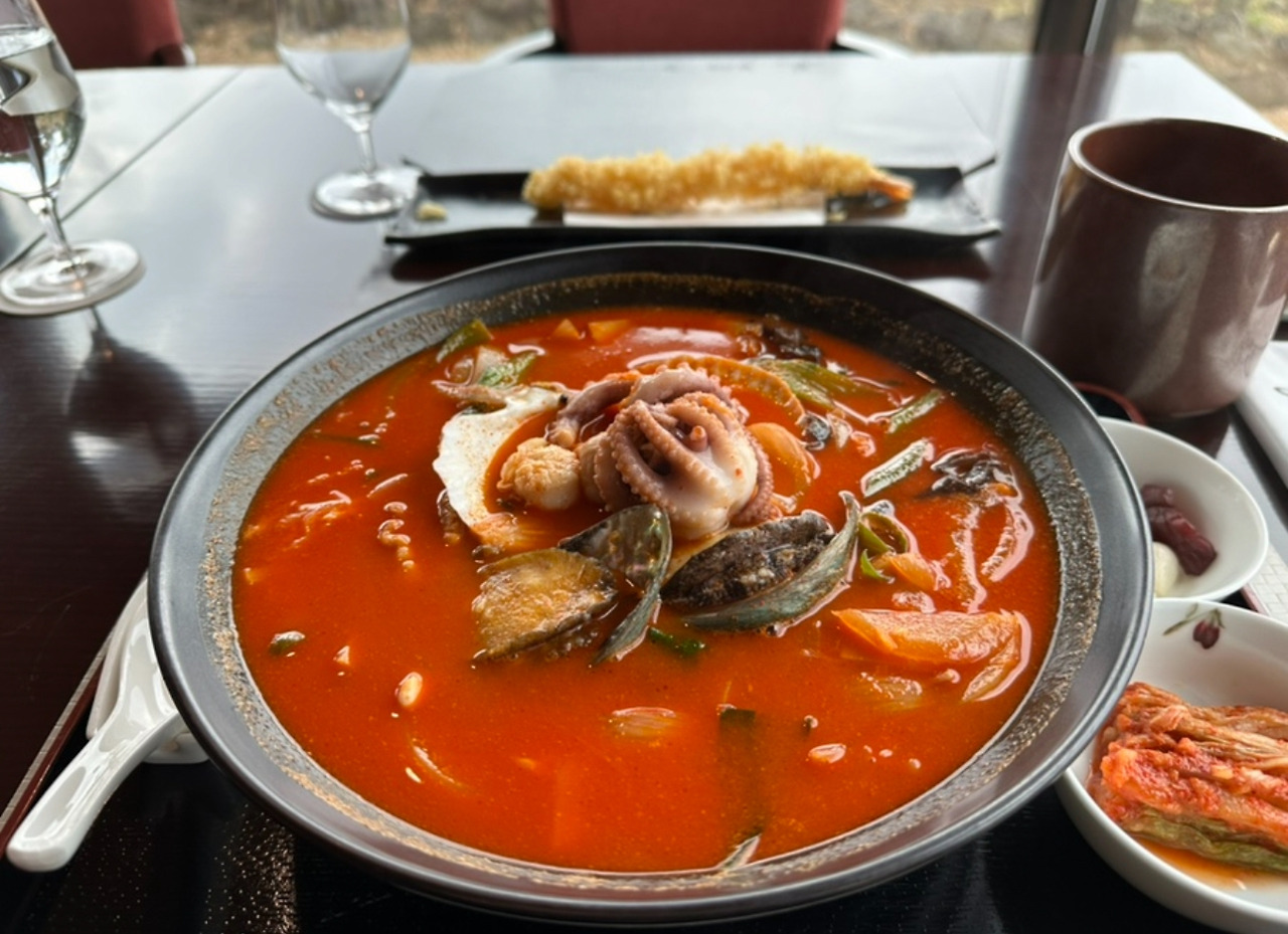드디어 먹어보는 짬뽕은 싱싱한 해산물이 주제인 것 같다. 그 비싼 전복에다 낙지, 가라비등 들어간 재료들이 엄청 신선하고 좋은 것들로 만들었다는 것을 대번에 알 수 있었다. 포도호텔 짬뽕 한 그릇이 왜 그렇게 비싸야 했는지 들어간 해산물을 자세히 들여다보면 이해가 간다.
