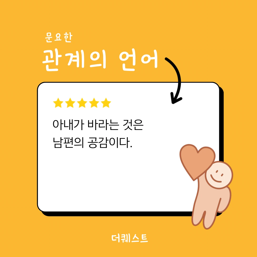 아내가 바라는 것은 남편의 공감이다. 아마도 거의 모든 주부들의 공통된 바람이 아닐까 싶다. 그저 남편이 공감해 주기만 바랄 뿐인데 작가님 말씀처럼 남편의 공감 능력이 부족한 것이 문제라고 딱 부러지게 지적을 해 주신다.