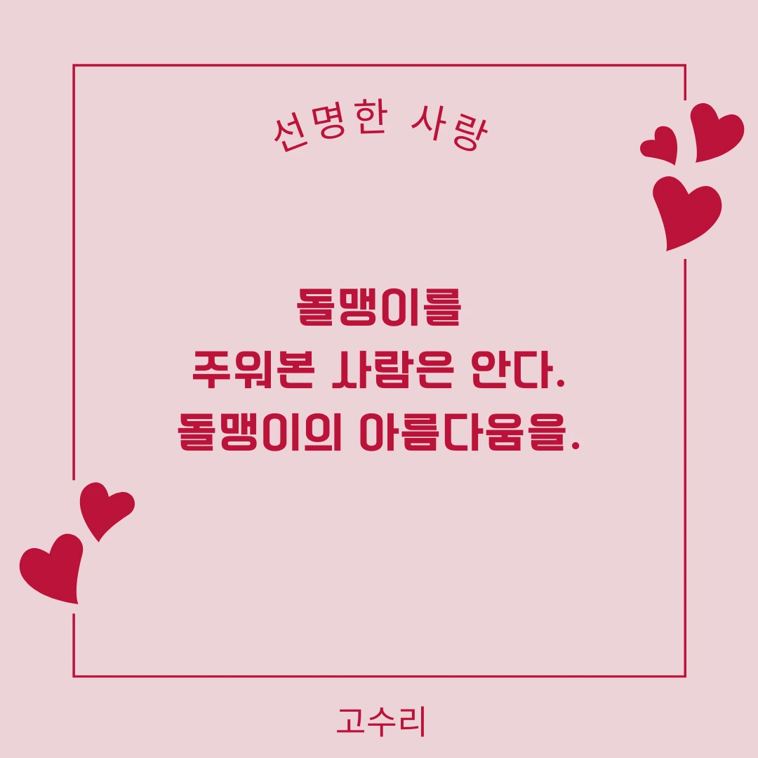"돌멩이를 주워본 사람은 안다. 돌멩이의 아름다움을.”