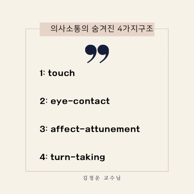 이 세상에 처음으로 태어났을 때 엄마가 아기를 만져주면서 생기는 그 터치감이, 엄마와 아기가 공유하기 시작하는 것이란다.