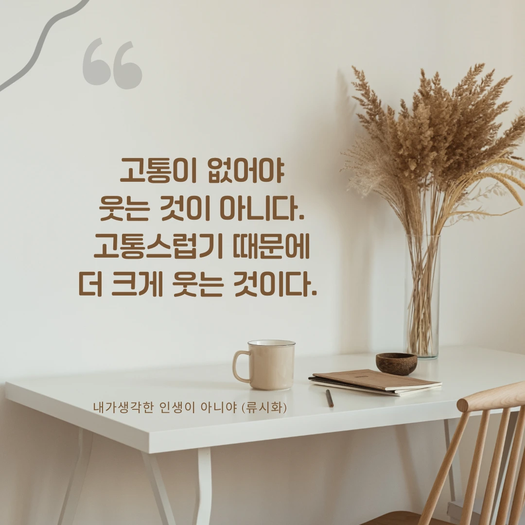 내가 표현할 수 있는 웃음에 대한 것은 기껏해야 “웃으면 복이 온다. 웃는 얼굴에 침 못 뱉는다.” 이 정도의 말밖에 모르는데 어쩜 같은 “웃음”이라는 단어에 류시화 작가님은 이렇게도 근사하게 표현을 하시는지 새삼 또 놀라고 감탄스럽다.
