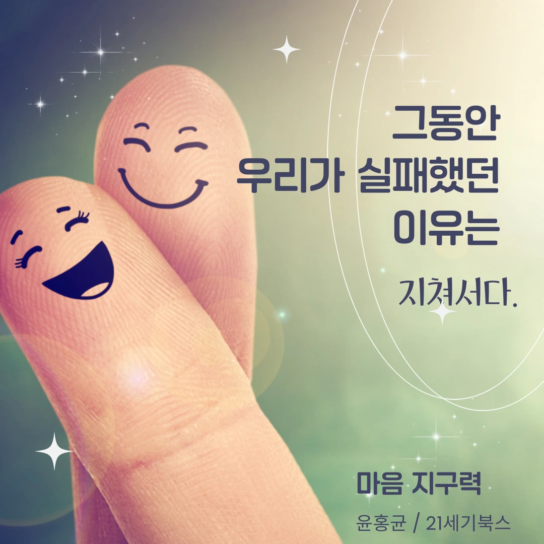 그동안 우리가 실패했던 이유는 지쳐서라고 명쾌한 답을 내려주신다. 그것을 요즘 용어로 “소진 증후군”이라고 한다.