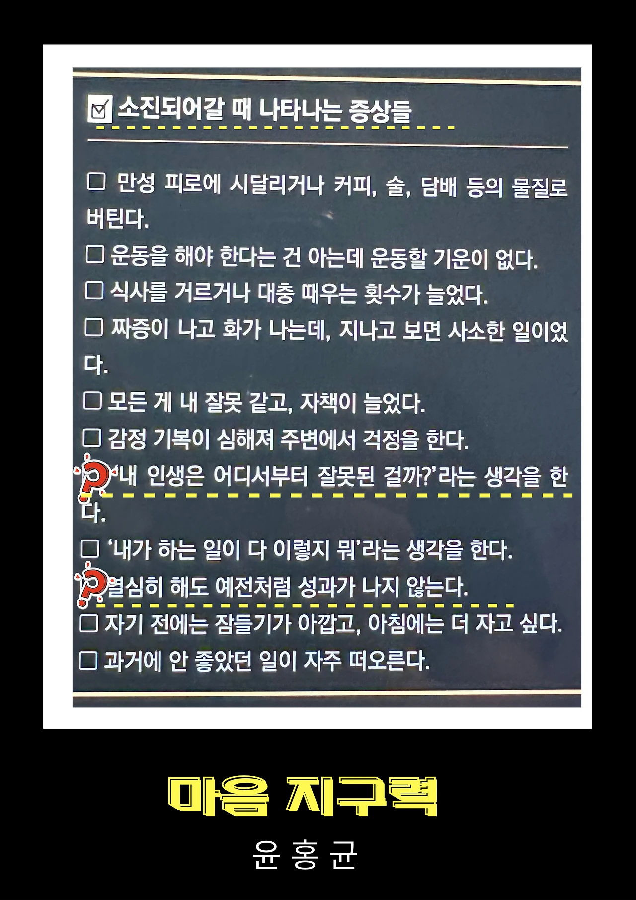 우리가 소진되어갈 때 나타나는 증상들이란다.