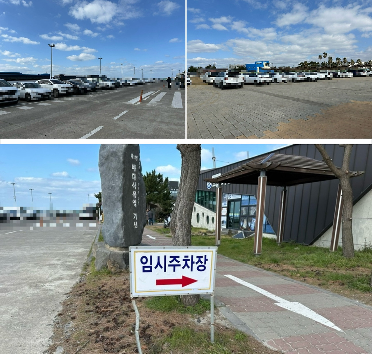 아직은 청보리로 유명한 4월과 5월도 아니어서 그다지 사람이 많을 거라고는 생각을 안 했다. 우리 집에서 불과 30분밖에 안 걸리는 운진항에 막상 도착을 했더니 웬걸 주차장이 꽉 차 있었다. 차를 댈 곳이 없어서 한 바퀴 돌았더니 임시 주차장이라는 간판이 있었다.