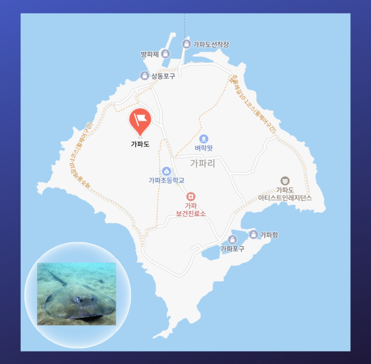 섬의 모습이 헤엄치는 가오리를 닮았다고 해서 가파도라는 이름이 붙었다는데 실제로 지도를 보니 정말로 가오리를 닮아서 신랑하고 둘이서 한참을 웃었다. 이게 뭐 그리 웃을 일인가 하면서, 그러면서 또 웃었다.
