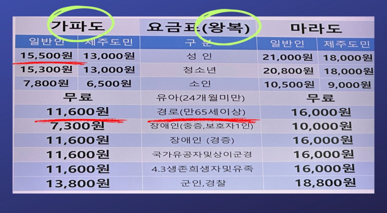왕복 요금이 한 사람당 11,600원밖에 안 한다. 경로 혜택이란다.