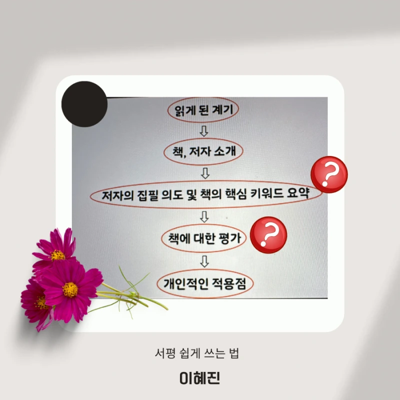 그런데 곰곰이 생각해 보니 내 스타일은 완전한 “서평 후감”도 아닌 것 같다. 이혜진 작가님의 말씀에 의하면 제대로 된 서평 후감을 위해서는 저자의 집필 의도 및 핵심 키워드를 요약해야 한다는 데 이게 가장 나한테 취약점인 것이다. 여기서 가방끈이 짧다고 한탄하는 이유가 등장을 하는 것이다.
