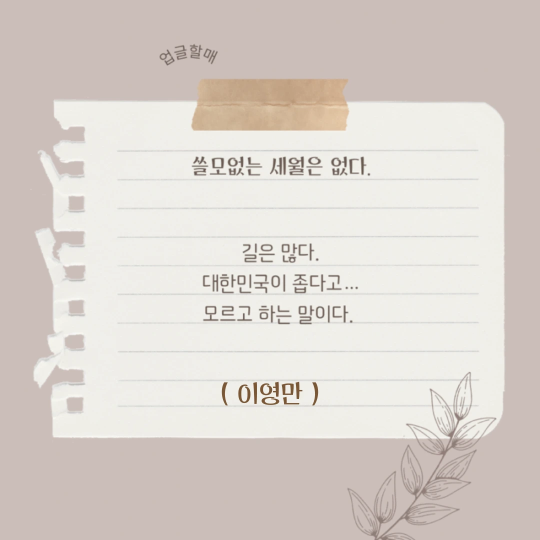 그냥 지금 살아있는 게 가장 큰일이고 가장 잘한 일이라는 이영만 작가님의 말씀처럼 지금 이 순간을 열심히 살아내자.