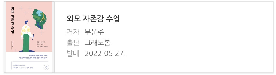 < 외모 자존감 수업 >이라는 위로의 좋은 책이 나와서 정말 다행이다.
