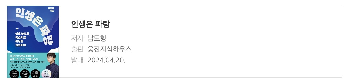 《 인생은 파랑 》이라는 책에서 남도형 작가님이 드리고 싶은 키워드가 바로 이 말이라고 하신다.