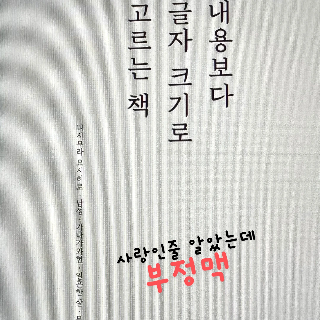 아니나다를까, 58페이지에 “내용보다 글자 크기로 고르는 책”이라고 쓰여 있다.