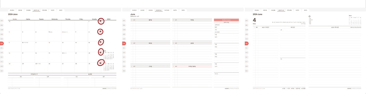 매 달마다 그 주로 넘어갈 수 있도록 주간표도 만들어 놓았다.