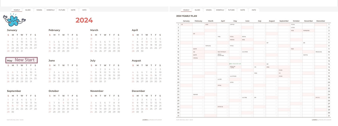 내가만든 다이어리는 한 달 단위인데 , 이 플래너는 일년 단위로 만들어져 있다.