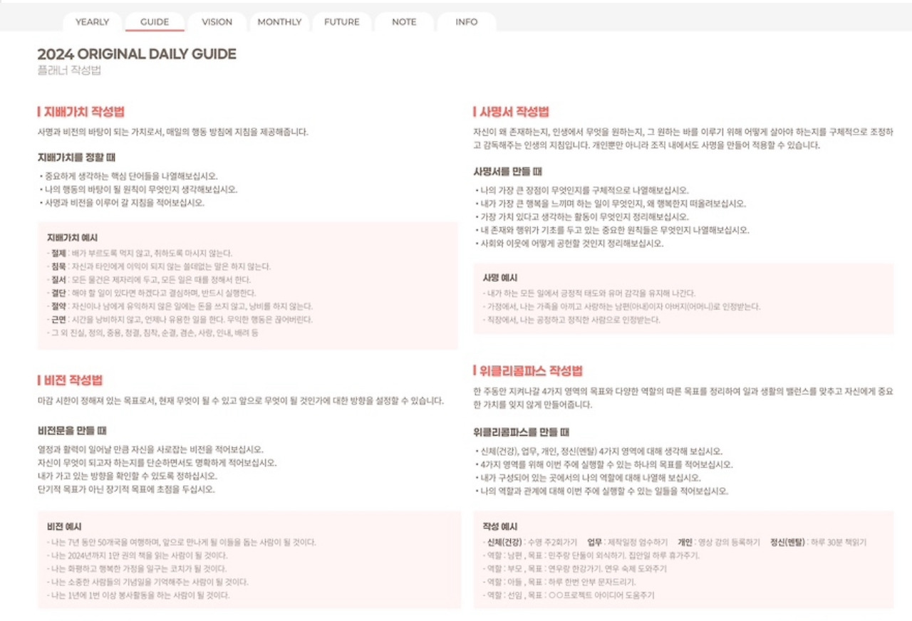 그냥 단순한 플래너가 아니라 어떻게 해야 좀 더 나은 나를 발전시킬 수 있나라는 그런 비전을 보여주는 플래너이다.