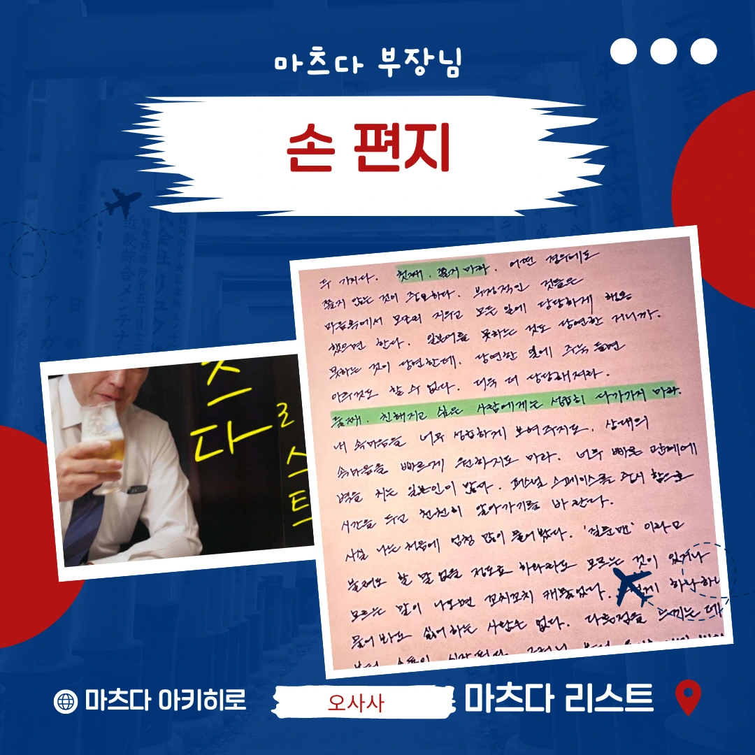《 마츠다 리스트 》 의 저자이신 마츠다 아키히로 작가님은 전명호라는 한국 이름또한 갖고 계신다. 한국인 어머니와 일본인 아버지 덕분에 한국과 일본, 양국의 정서를 모두 갖출 수 있었단다.