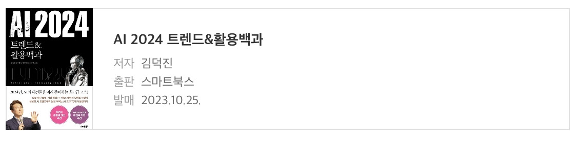 《 AI 2024 트렌드 & 활용백과 》, 이 책을 먼저 읽고 난 후에 김덕진 소장님의 신작인 《 챗봇 2025 트렌드&활용백과 》를 읽었어야 했는데, 거꾸로 되어버렸다.