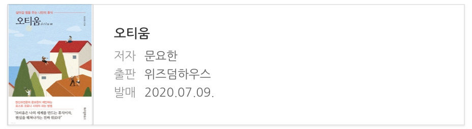 정신과 전문의 이신 문요한 작가님이 이끌어주시는, 오롯이 자신을 만날 수 있고 일상의 기쁨을 느낄 수 있는 <오티움>의 세계로 한 발을 내디뎌본다.