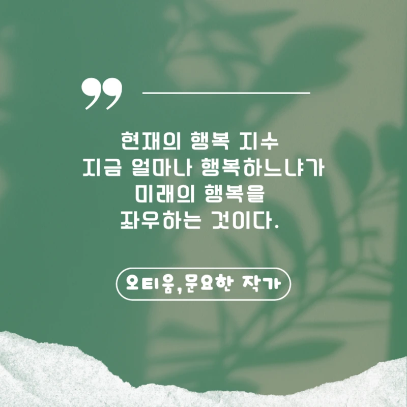 <오티움>에서 문요한 작가님은 미래의 행복을 예측하는 데 있어서정확한 요소가 있는데, 그게 바로 “현재의 행복지수”라고 하신다.