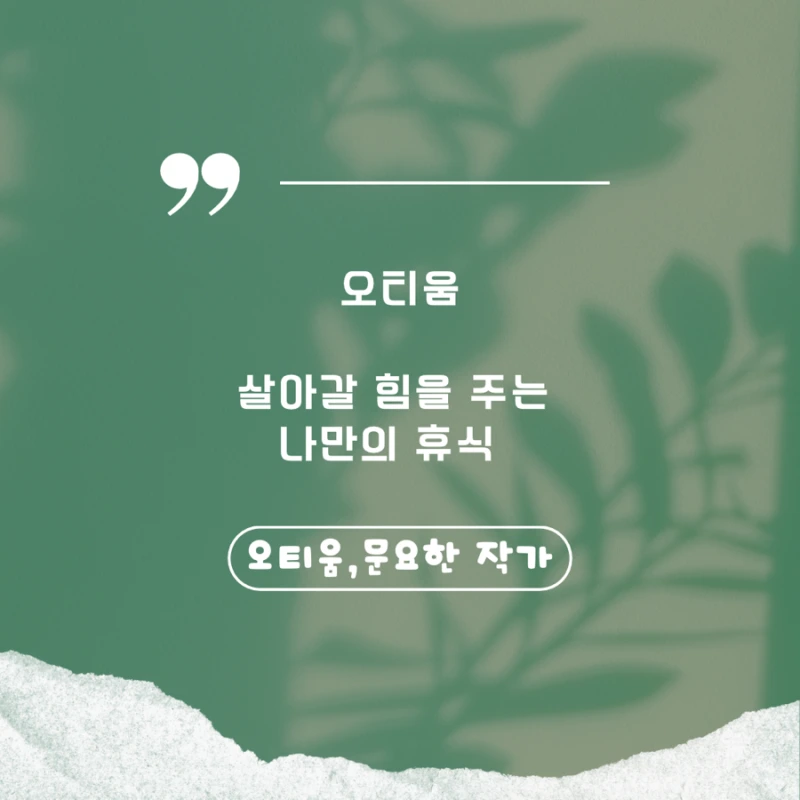 하지만 문요한 작가님의 “오티움”에 대한 정확한 정의는 다름 아닌 바로 우리들에게 “살아갈 힘을 주는 나만의 휴식”이라고 정의를 내려주신다.