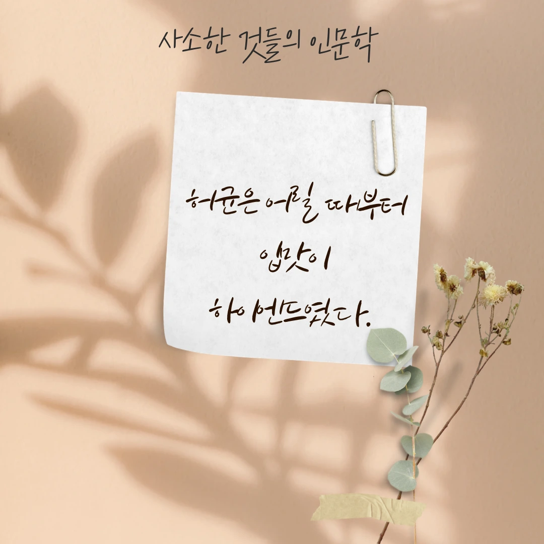 허균은 어릴 때부터 입맛이 하이엔드였다고 설명하시는 조이엘 작가님의 표현이 너무도 재미있어서 한참을 웃었다.