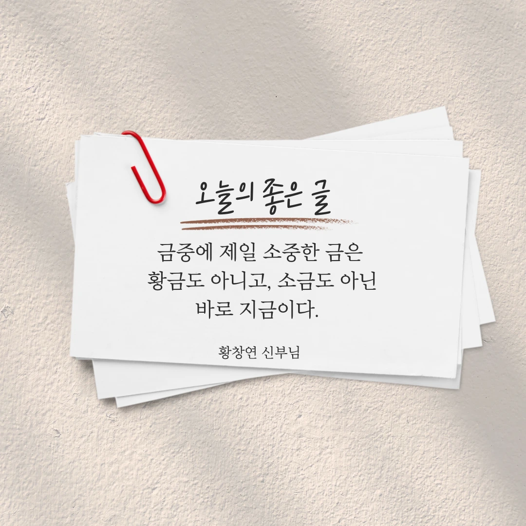 황금보다도 중요하고, 소금보다도 더 중요한. 바로 “지금”을 알차게 살아가야겠다.