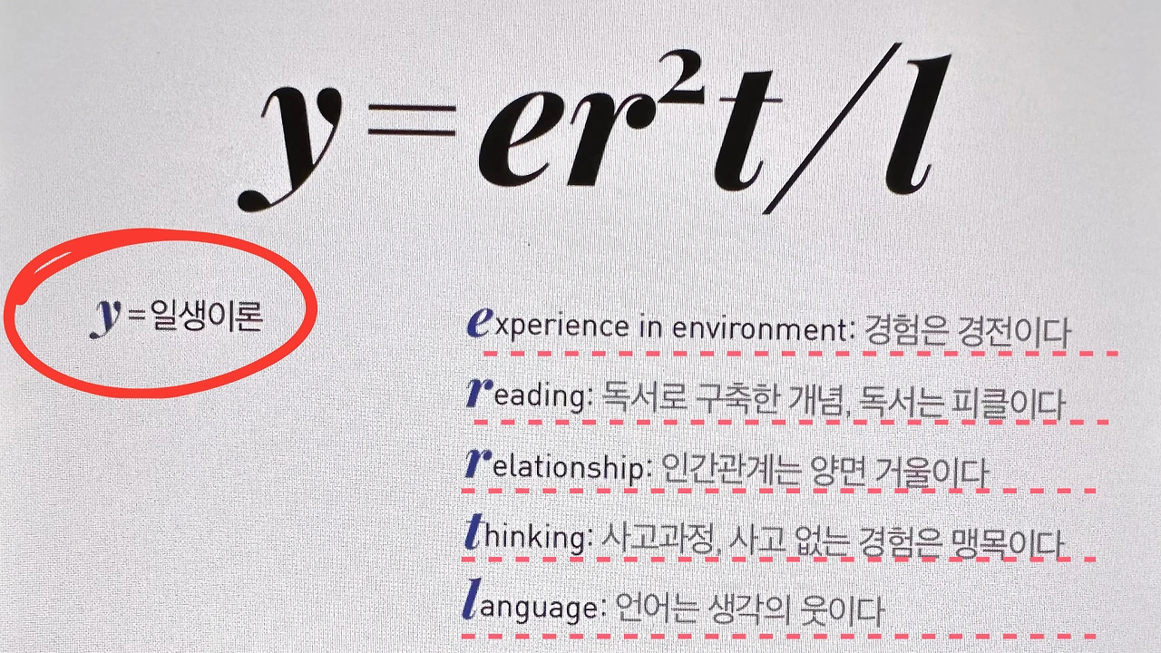 이 책을 쓰시면서 교수님이 가장 강조하고 싶었던 자기만의 성공 방정식이다.