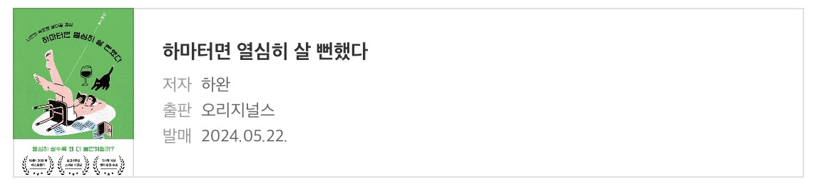 2018년도에 처음 나왔을 때도 엄청난 인기를 끌었었는데, 개정판으로 다시 돌아온 지금도 여전히 엄청난 인기몰이를 하고 있는 《 하마터면 열심히 살 뻔했다 》, 이 책은 제목만큼 정말 재미있다. 그리고 진짜 웃긴다.