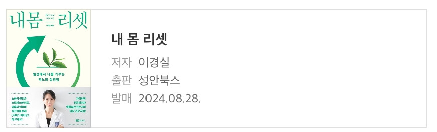 그리고 책의 하단에는 마치 띠지를 두른 듯, 친근한 미소를 띤 이경실 작가님의 사진이 자리 잡고 있으면서, 마치 믿음직한 건강 멘토가 “우리 함께 내 몸 리셋을 위해서 전진합시다”라고 손짓하는 듯한 느낌을 준다.