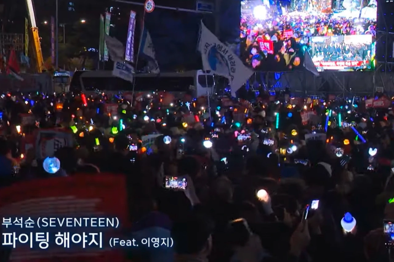 인기 아이돌 그룹인 ‘부석순’의 노래 ‘파이팅’에 맞춰서, 시민들이 노래에 맞춰, 환호성과 구호를 외치는 모습이 마치 딴 세상을 보는 것 같았다.