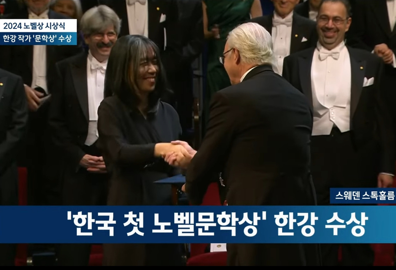 2024년 12월 10일 자정에, 우리의 한강 작가가 스웨덴 스톡홀름에서, 대한민국 역사상 최초로 노벨 문학상을 받았다.