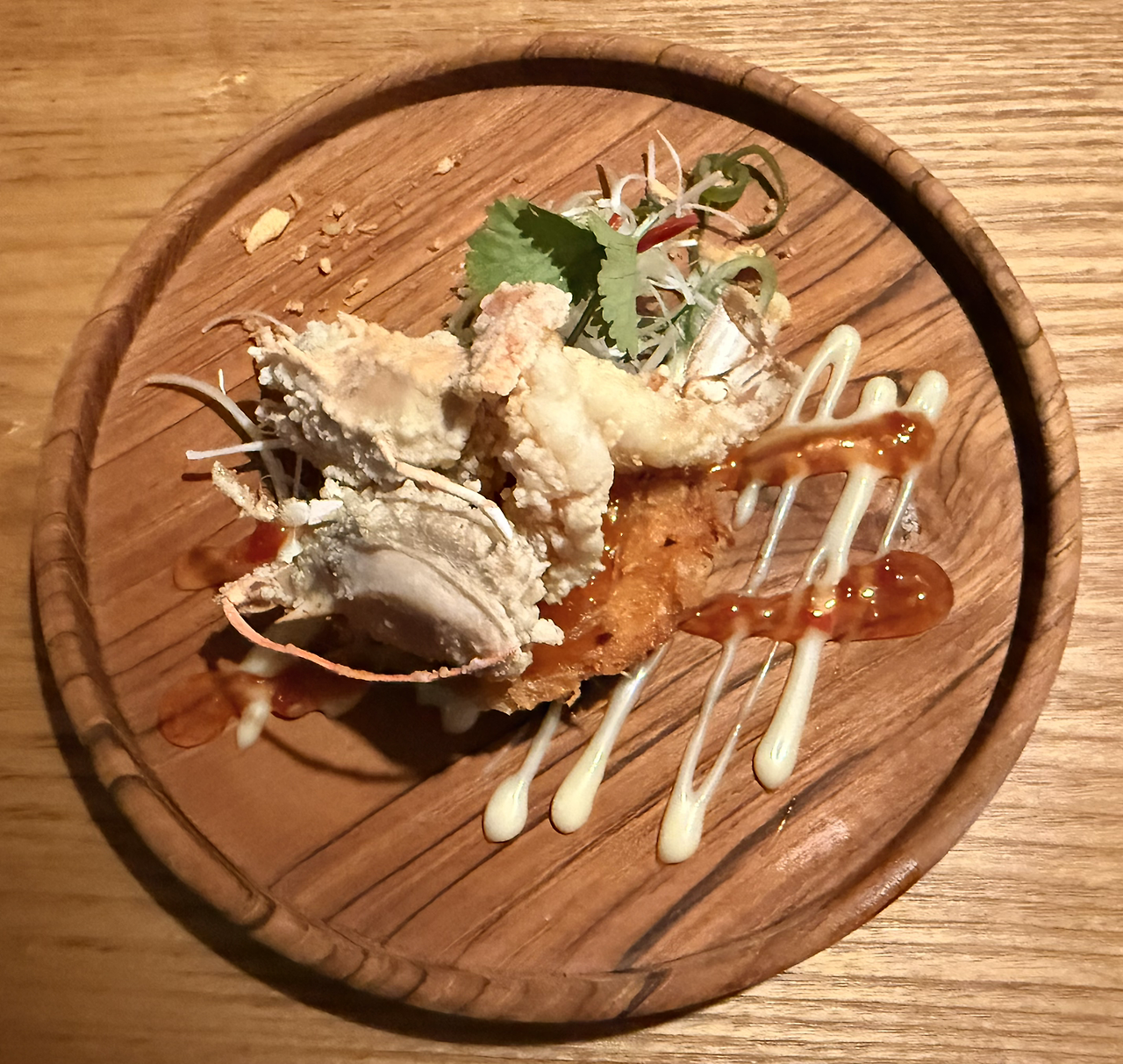 메인 재료인 딱새우는 바삭한 튀김옷에 감싸여 있고, 그 위에 올려진 고수 잎은 신선함을 더해주면서 매력을 있는대로 뽐내고 있는 것 같다.