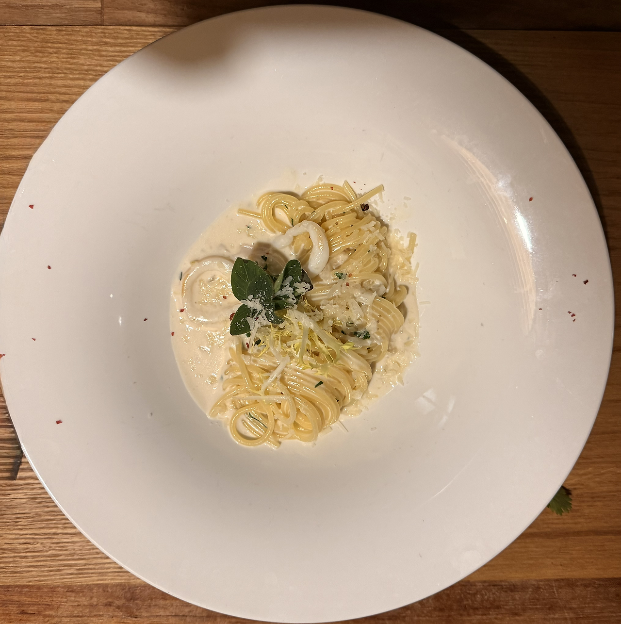 다섯 번째 요리는 제주산 한치로 만든 크림소스 파스타이다.