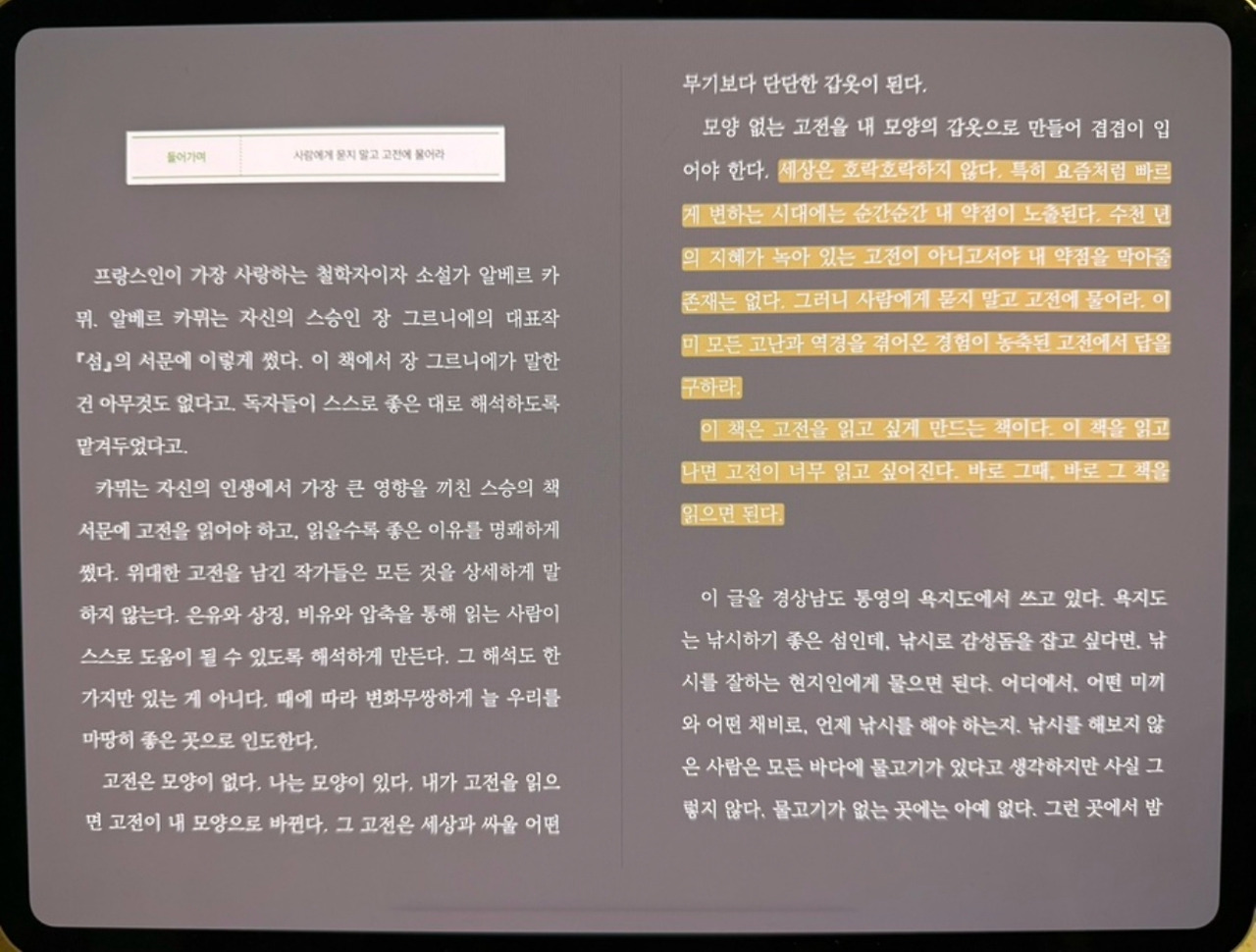 작가님만의 ‘고전’이라는 말씀에