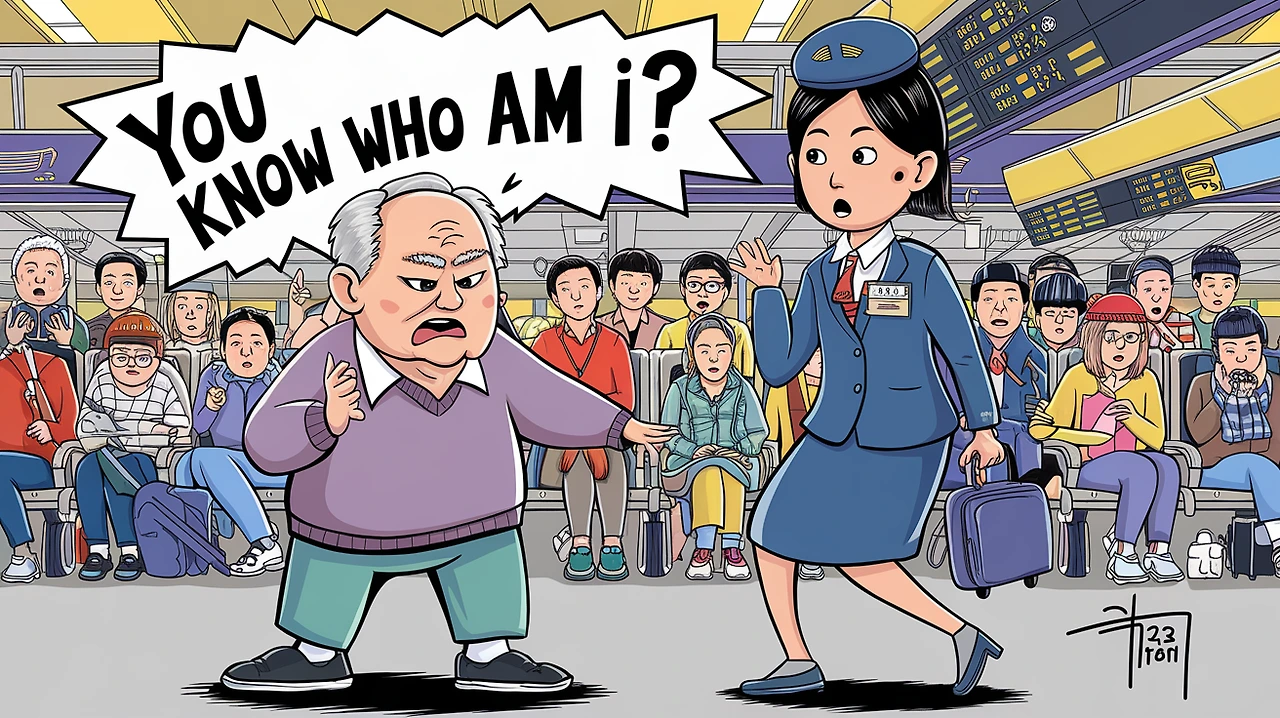 미국에서 어떤 나이 지긋한 사람이 공항에서 승무원과 실랑이를 벌이다가, 내가 누군지 알아?라고 영어로 “you know who am I? 말했단다.