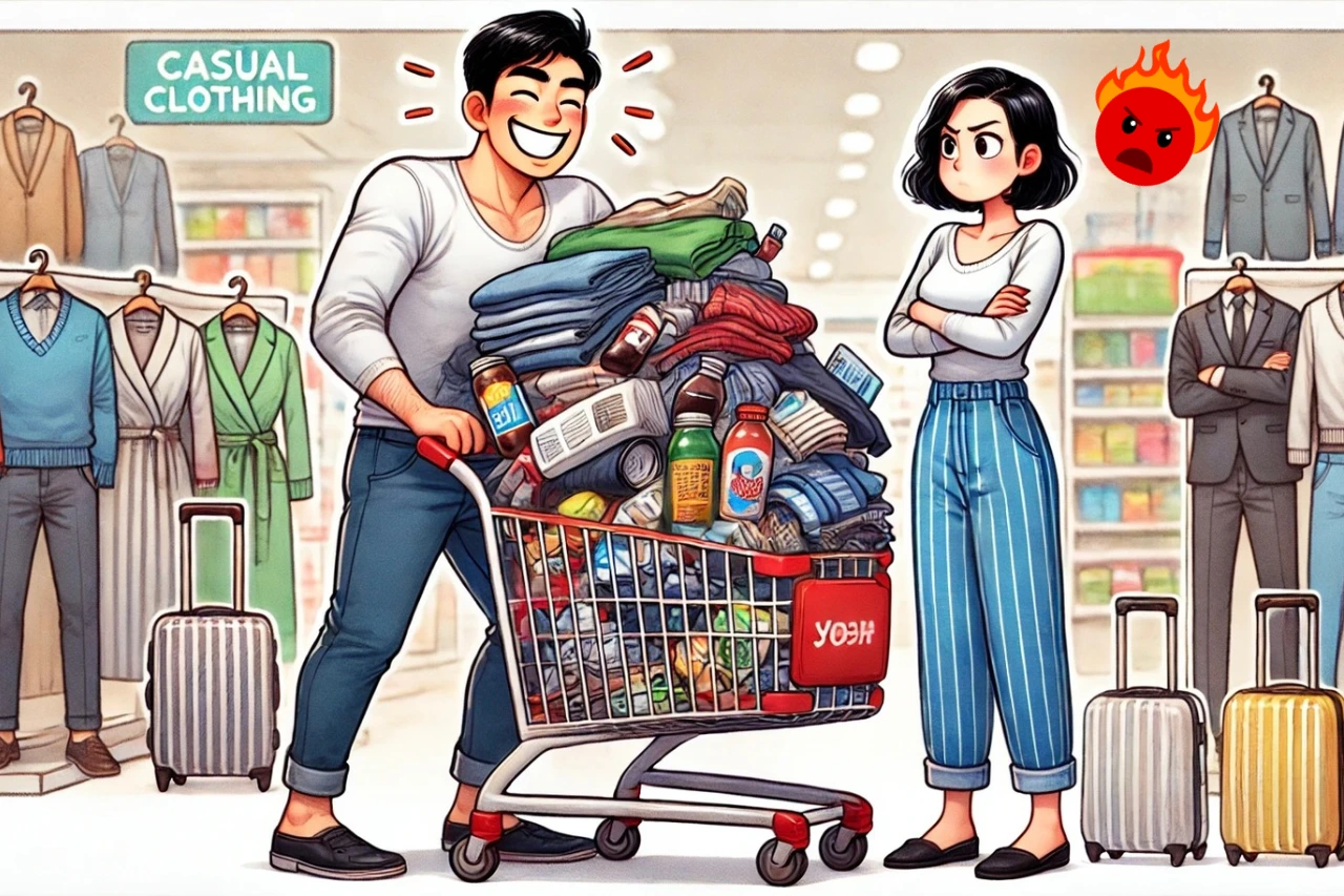 남편이란, 쇼핑할 때 “쓸데없는 것 사지 말고, 딱 살 것만 사자”라고 큰소리치면서, 막상 마트에 들어가면 자기 물건만 잔뜩 사는 사람이란다.
