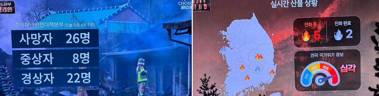 7군데서나 발생한 산불 가운데서 2군데만 진화가 되고, 5군데는 아직도 진화 중이란다.