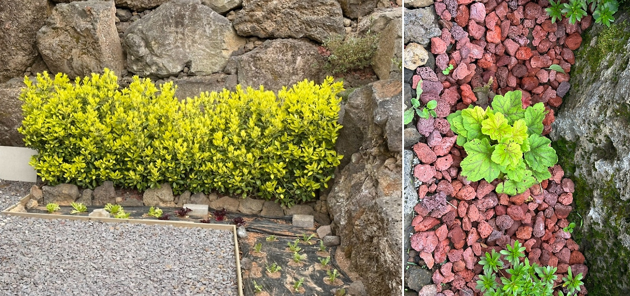 특히 제주에서만 볼 수 있는 송이 화산석, 그 붉고 독특한 돌들은 남편의 손길을 만나 더할 나위 없이 아름다운 조화를 이룬다.